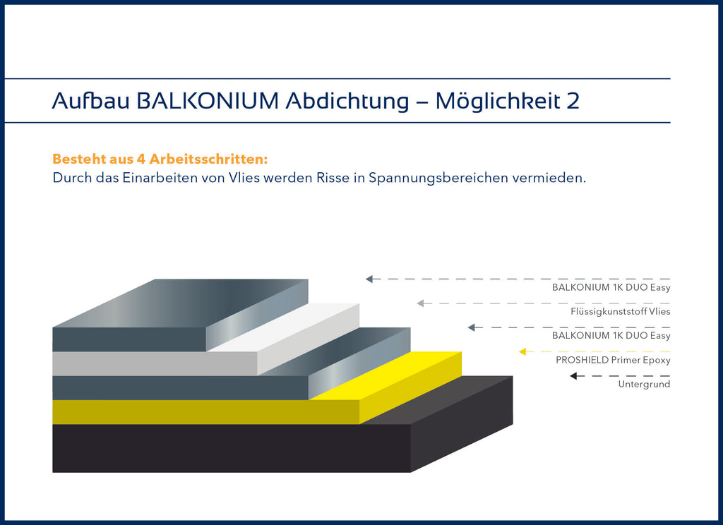 Bei freistehenden Balkonen ist keine Vlieseinlage notwendig. Bei Spannungs- und Randbereichen sowie Anschlüssen empfehlen