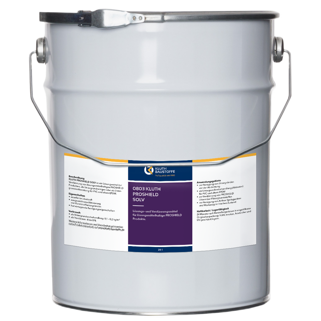 Kluth PROSHIELD SOLV ist ein Lösungsmittel für die Verdünnung von PROSHIELD Lösemittel-Flüssigkunststoff, als Untergrundreiniger oder als Untergrundvorbereitung für PVC & altem EPDM.