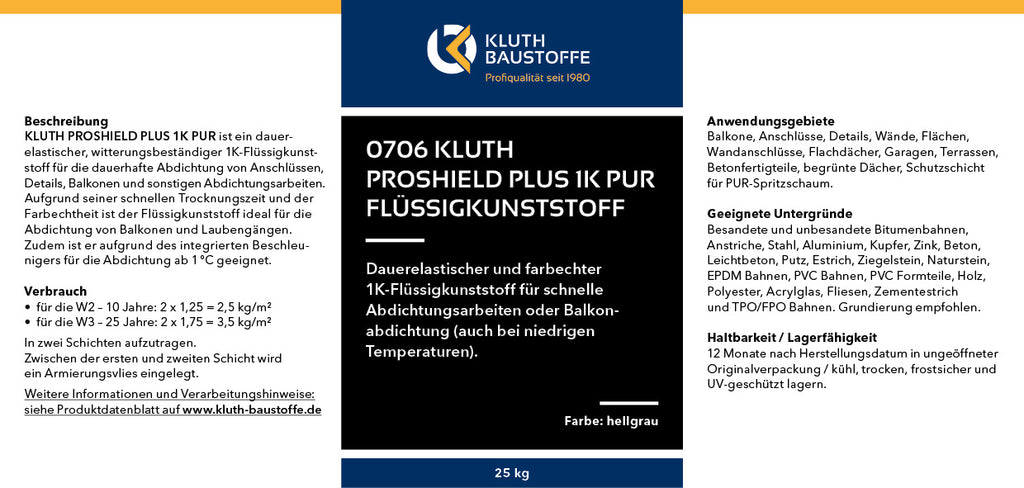 Produktdatenblatt 0706 Kluth PROSHIELD PLUS 1K PUR Flüssigkunststoff
